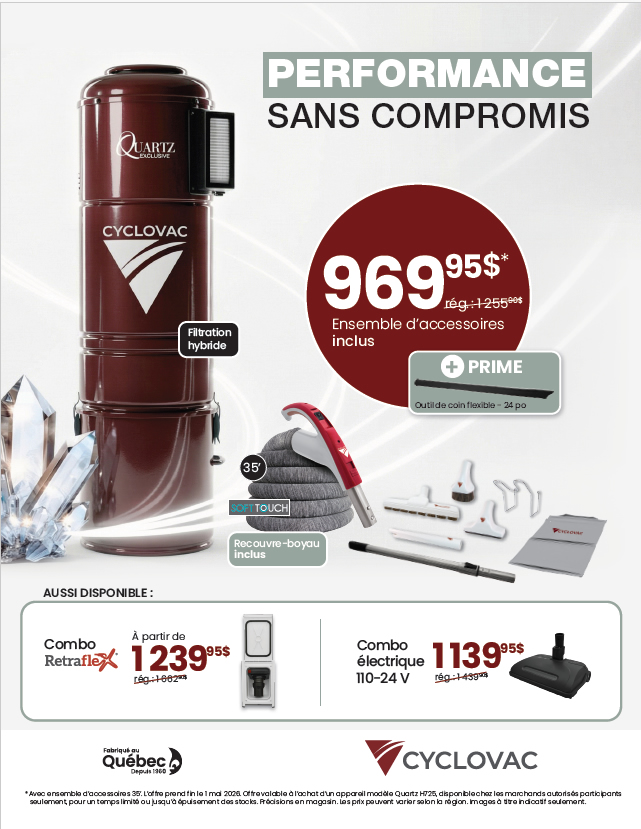 Tous simplement ingénieuse, nos exclusivité Cyclo Vac vous simplifient la vie.