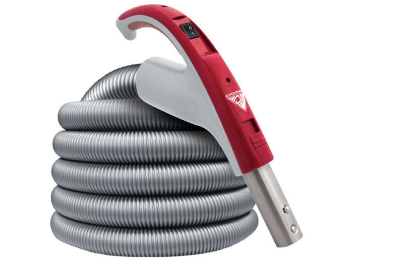 Boyau pour aspirateur central avec interrupteur arrêt/départ 24V directement sur la poignée vous permettant de démarrer et d'arrêter votre aspirateur central à votre guise.